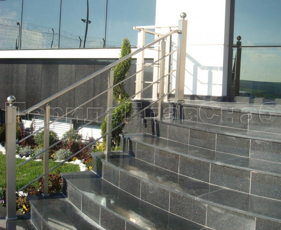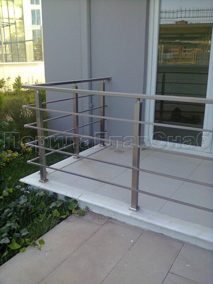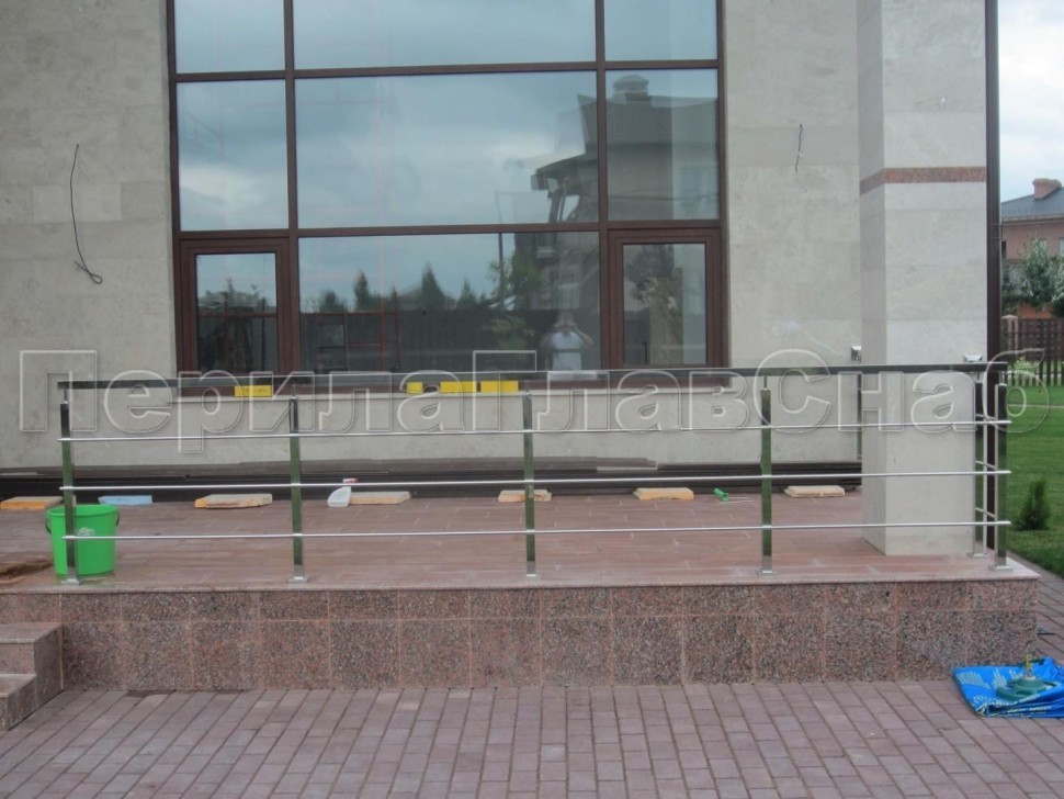 Записаться на встречу Три ригеля на держателях, квадратный поручень и круглые стойки