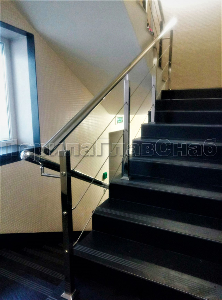Ограждения из нержавейки. Заполнение из 3х тросиков. Квадратные стойки.