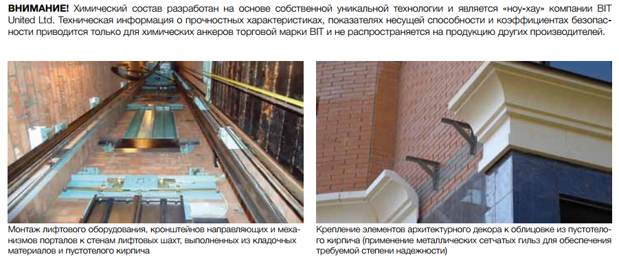Химический анкер Bit-PE высокоэффективный двухкомпонентный химический состав на основе синтетической быстроотверждаемой полиэстерной смолы в сочетании с металлическими анкерными элементами
