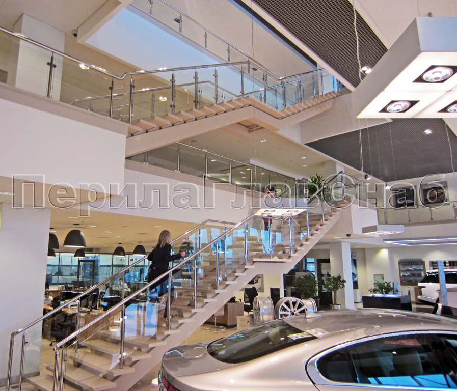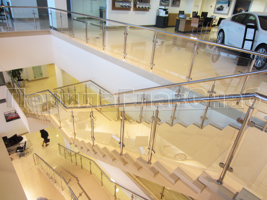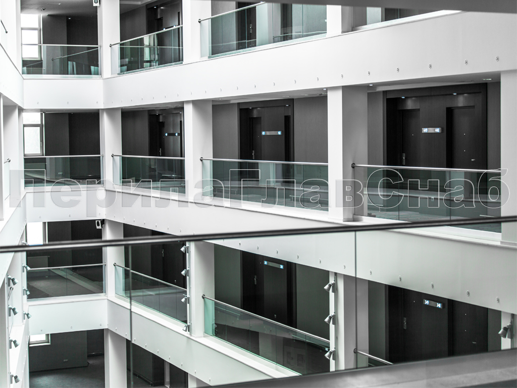 Виды стеклянных перил для атриумов:
