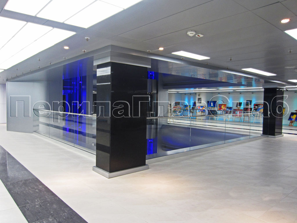 Стеклянные перила для атриума в крупном торговом центре, Москва.
