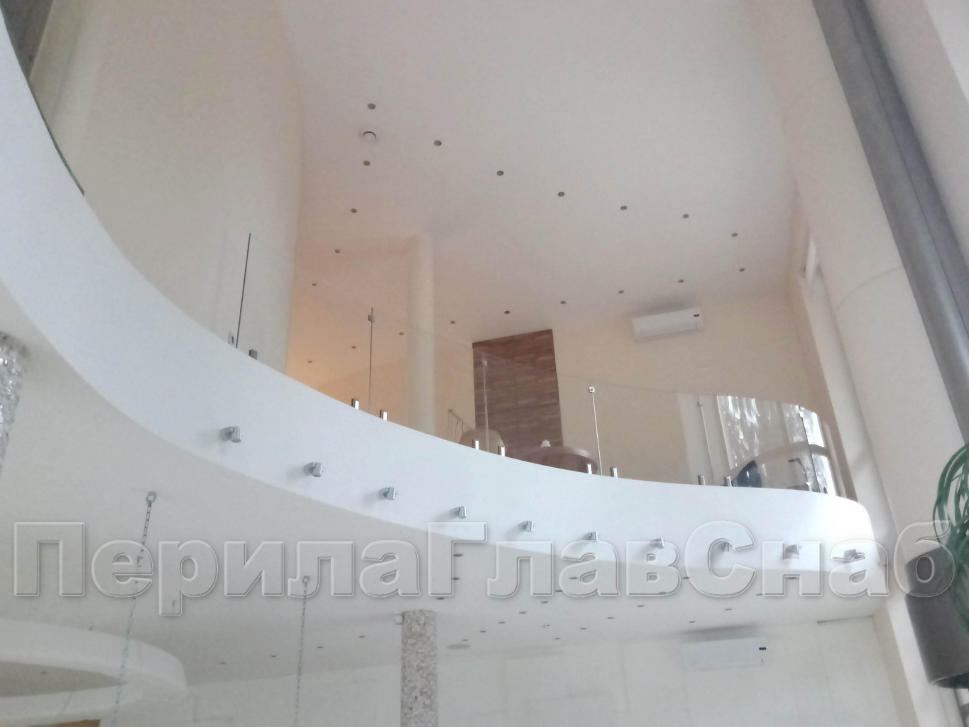Стеклянные перила атриума. Атриум эллиптической формы.