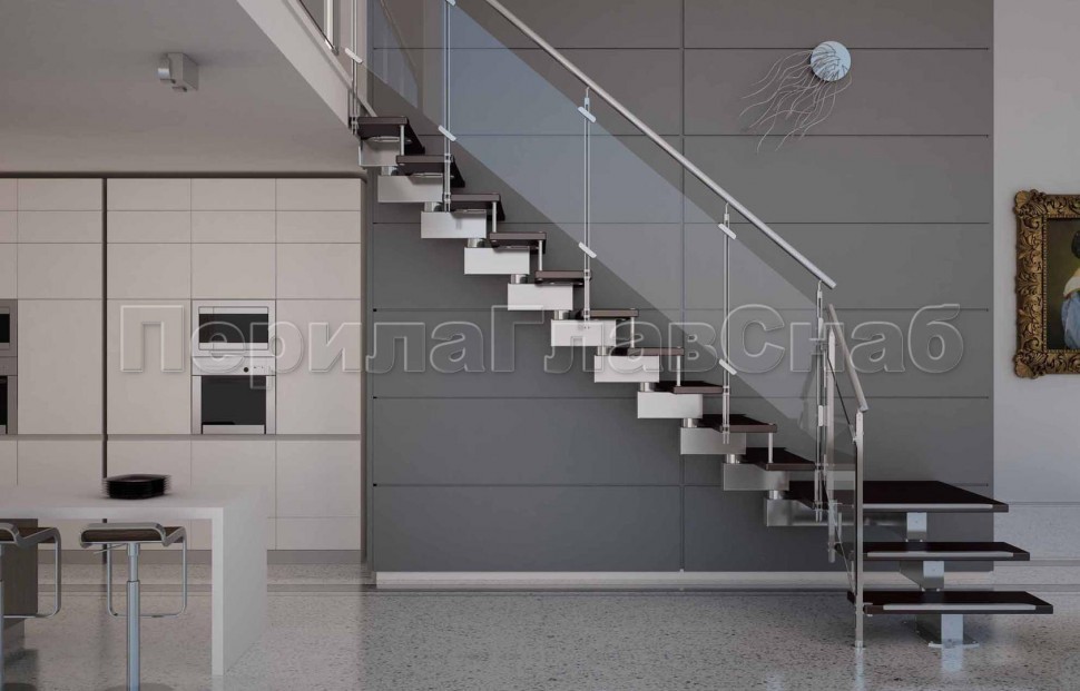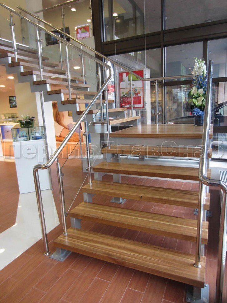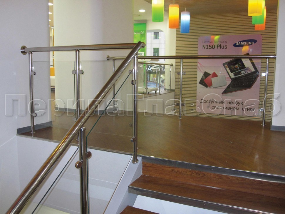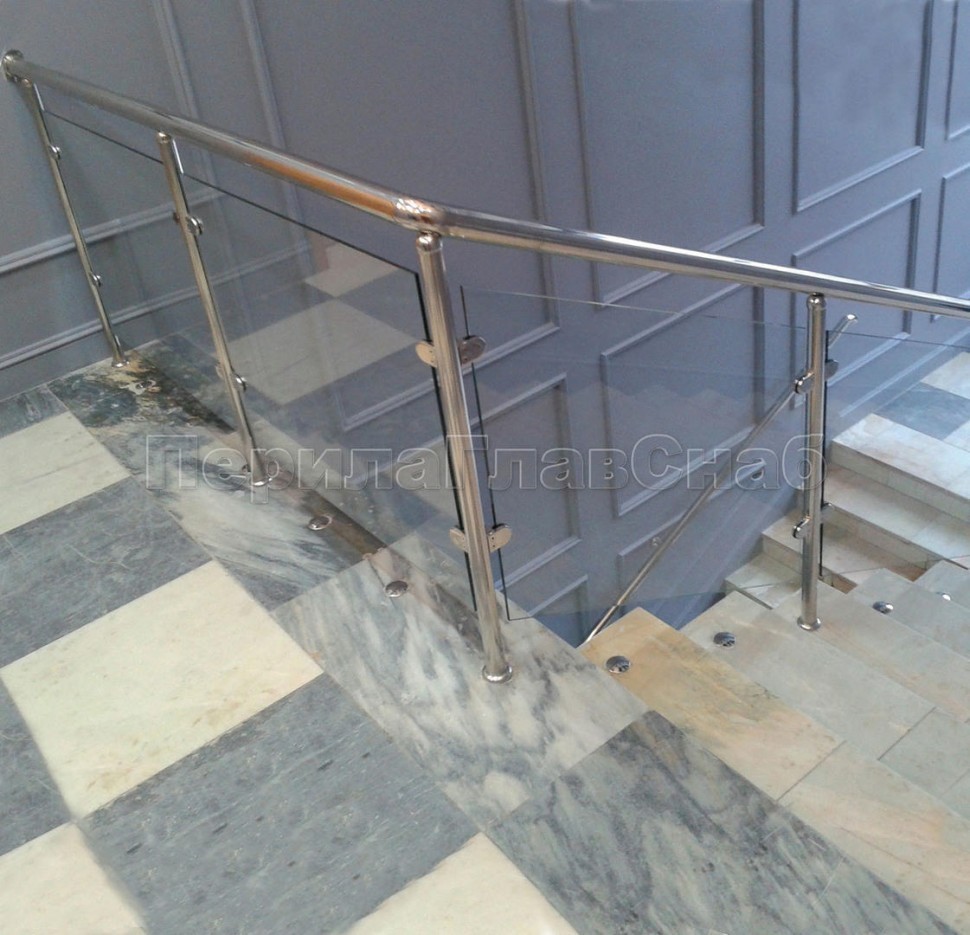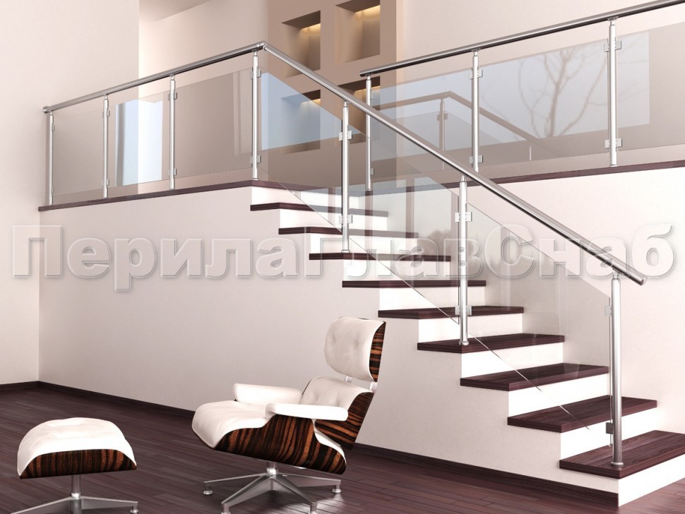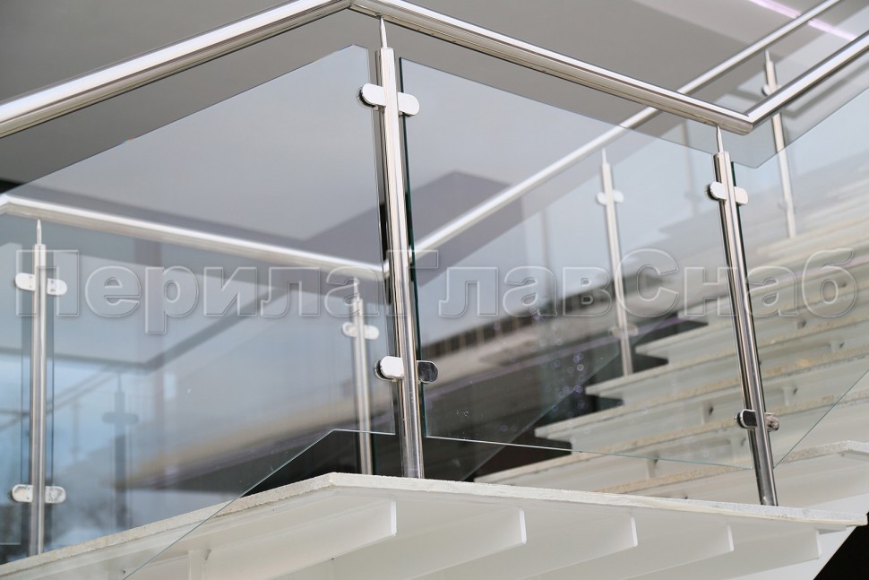 Ограждения лестницы без поручня с зажимными стеклодержателями и стойками