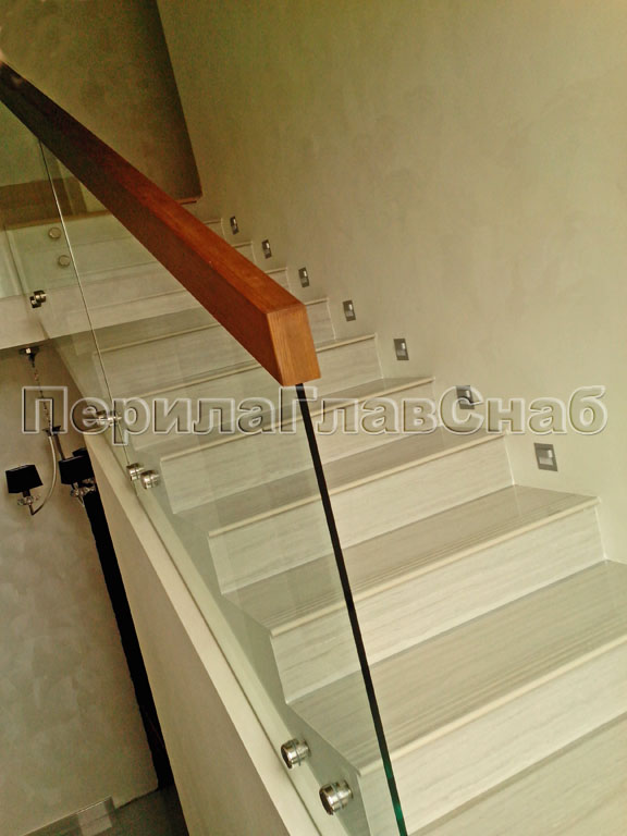 Ограждения лестниц на несущем стекле с подсветкой в Волгограде. Готовые проекты ПерилаГлавСнаб
