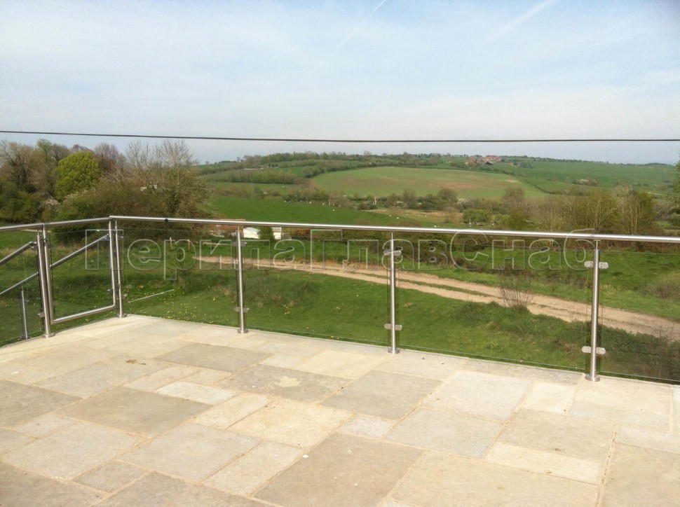 Ограждение на несущем стекле с торцевым креплением для крыш