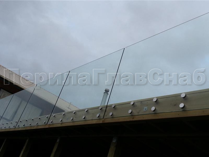 Ограждение на несущем стекле с торцевым креплением для крыш