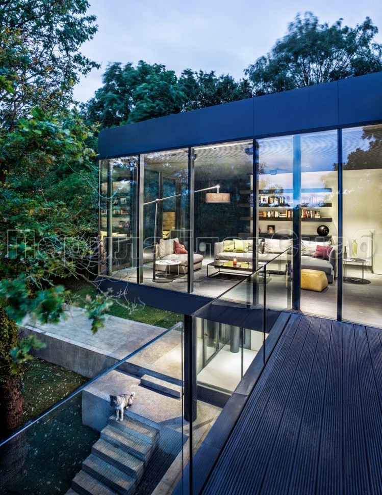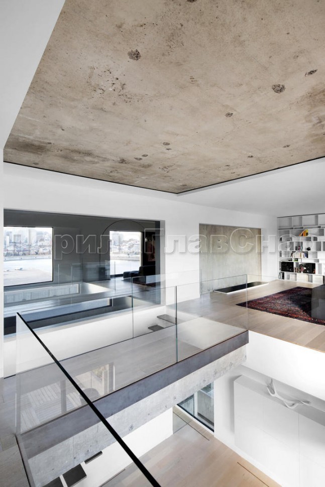Ограждение с профильным поручнем с пазом на точечном креплении на лестнице