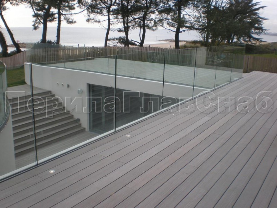 Ограждение с деревянным поручнем на выносе на точечном креплении