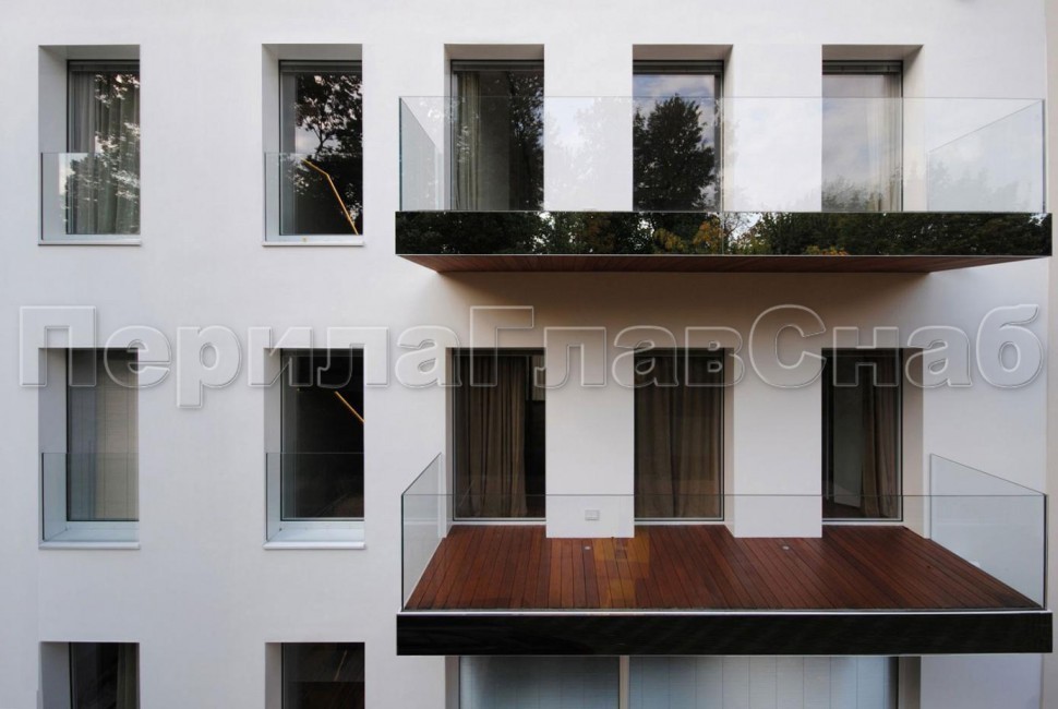 Ограждение с квадратным деревянным поручнем на точечном креплении