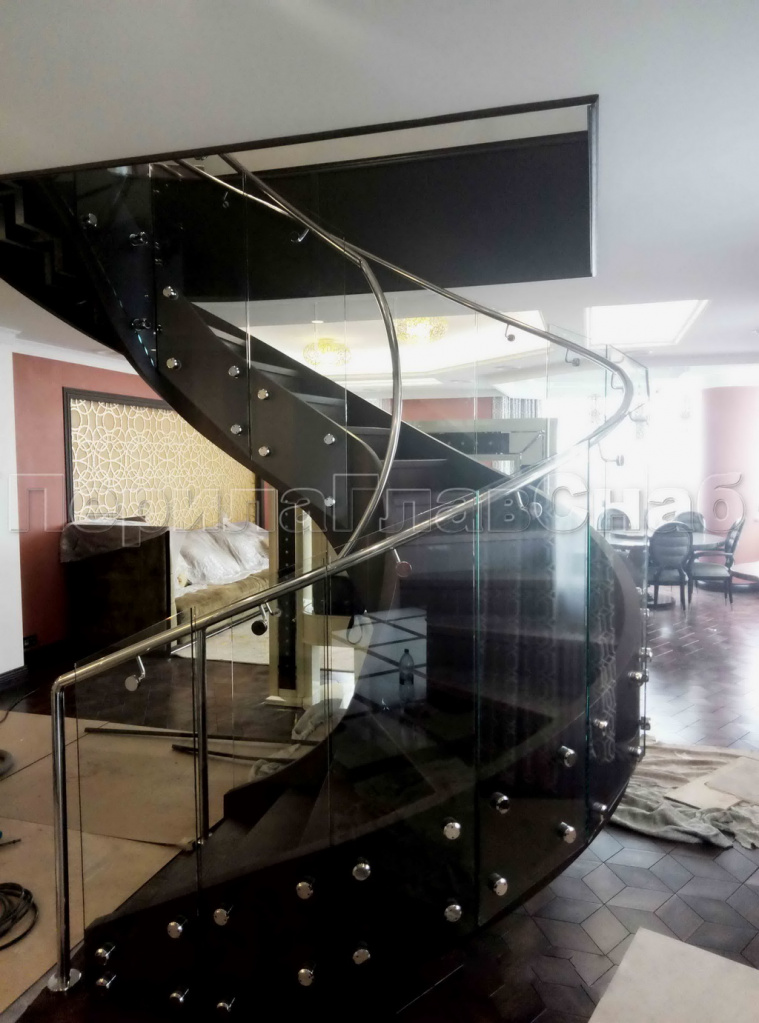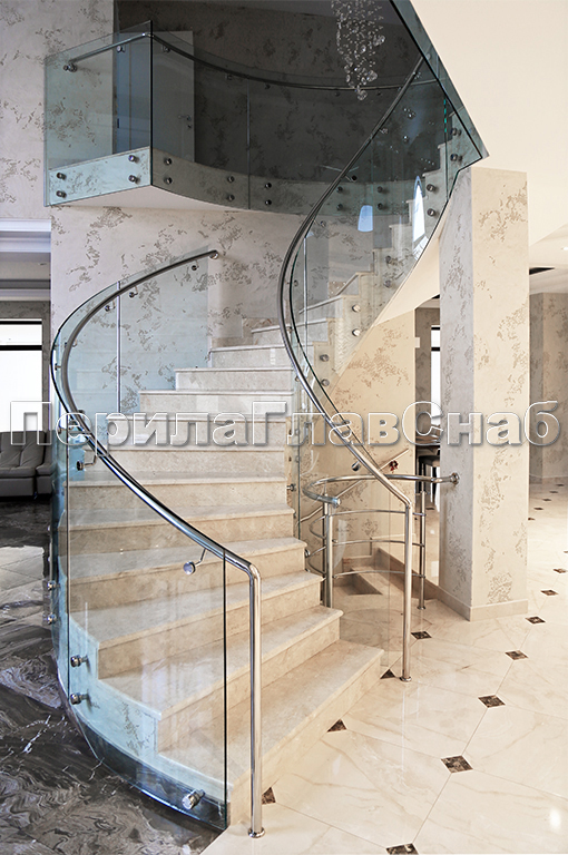 Стеклянные ограждения винтовой лестницы и баллюстрады в Волгограде. Готовые проекты ПерилаГлавСнаб