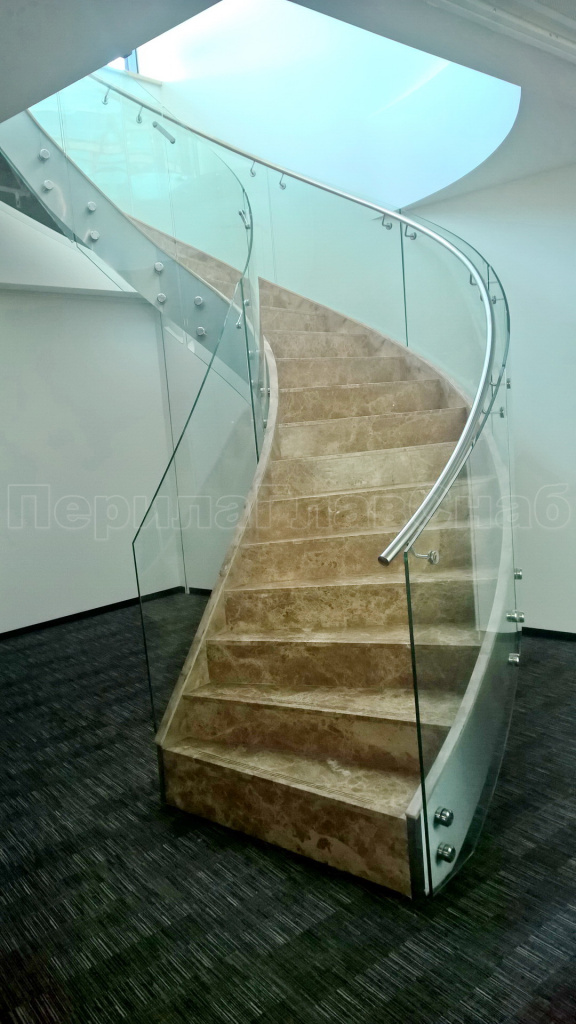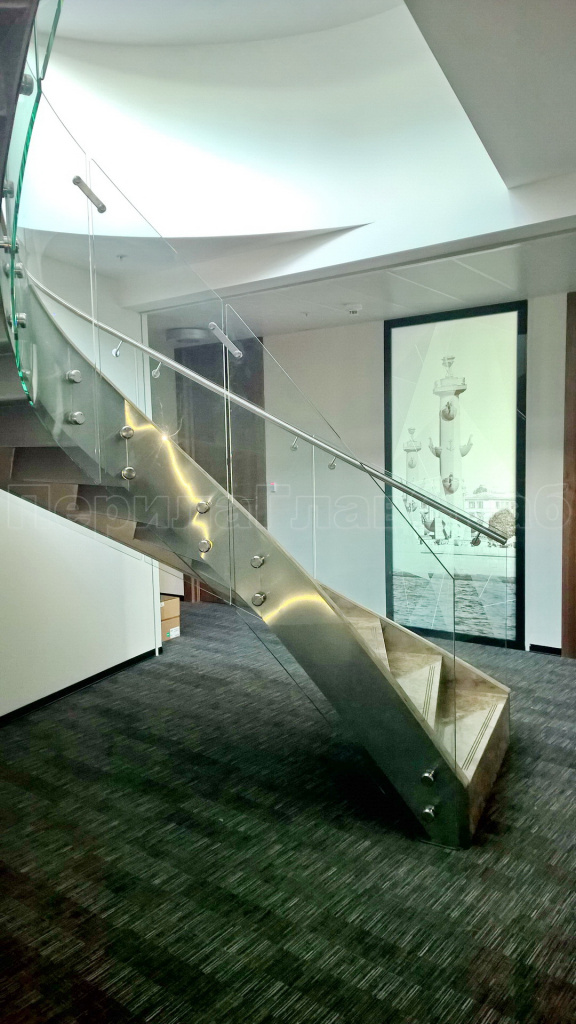 Виды стеклянных ограждений для забежных лестниц: