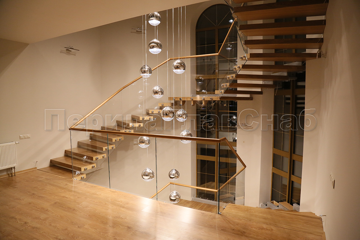 Ограждения лестниц на несущем стекле с подсветкой в Волгограде. Готовые проекты ПерилаГлавСнаб