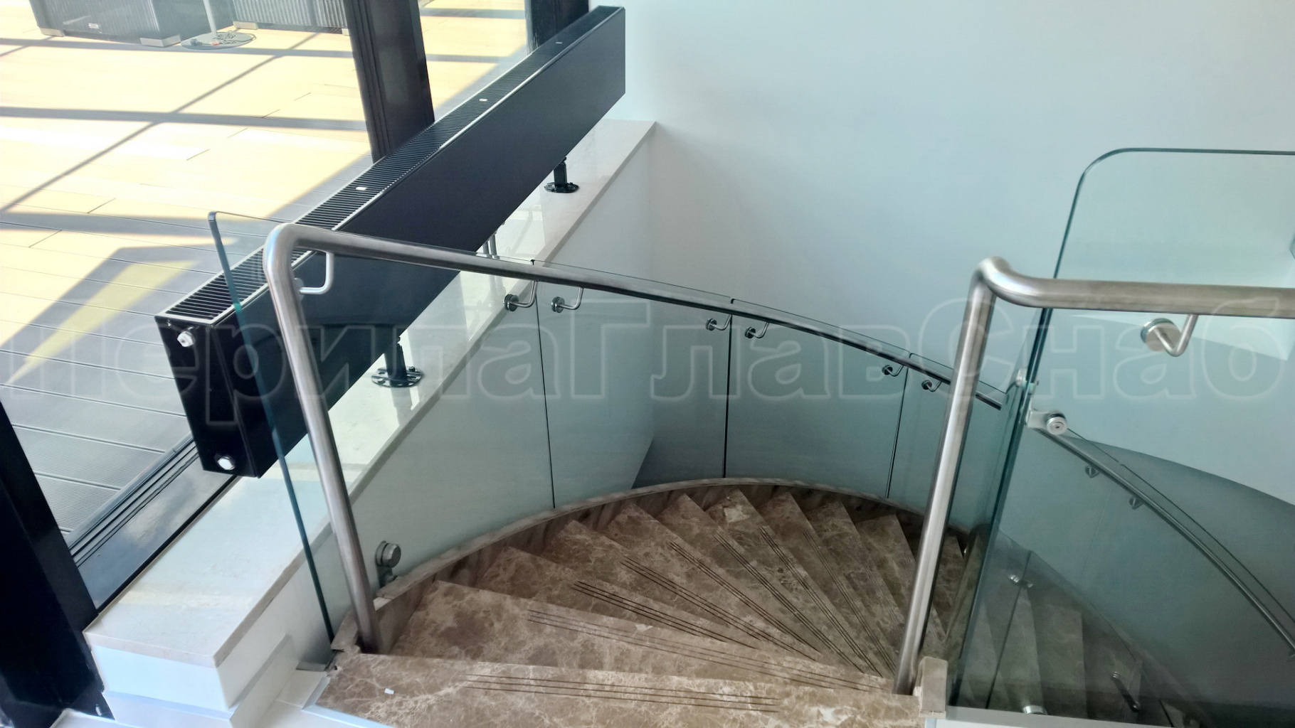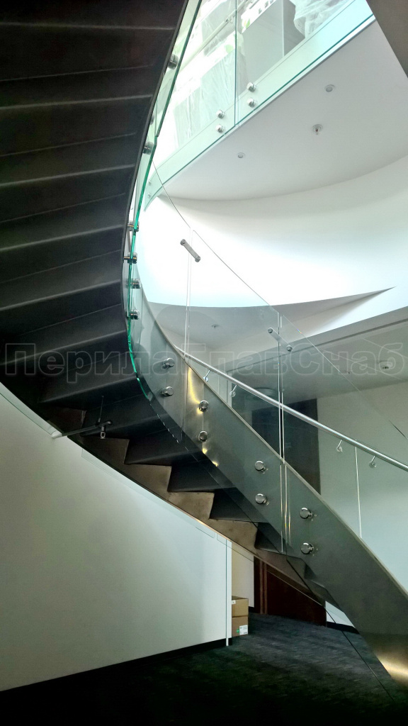 Стеклянные ограждения винтовой лестницы и баллюстрады
