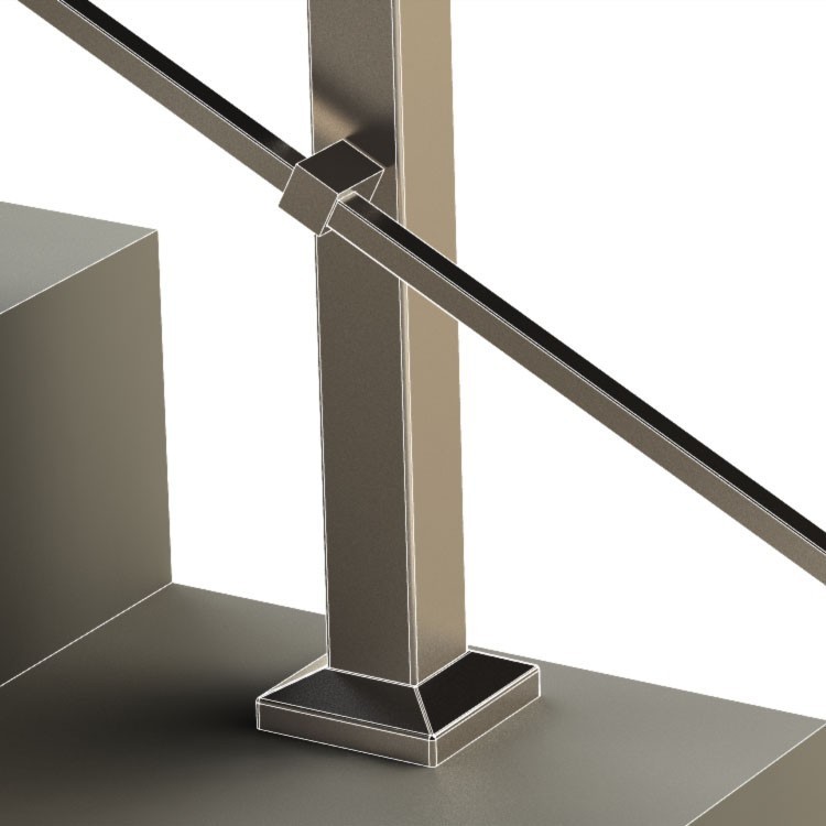 Ограждение лестницы с квадратными стойками и пластинчатыми стеклодержателями