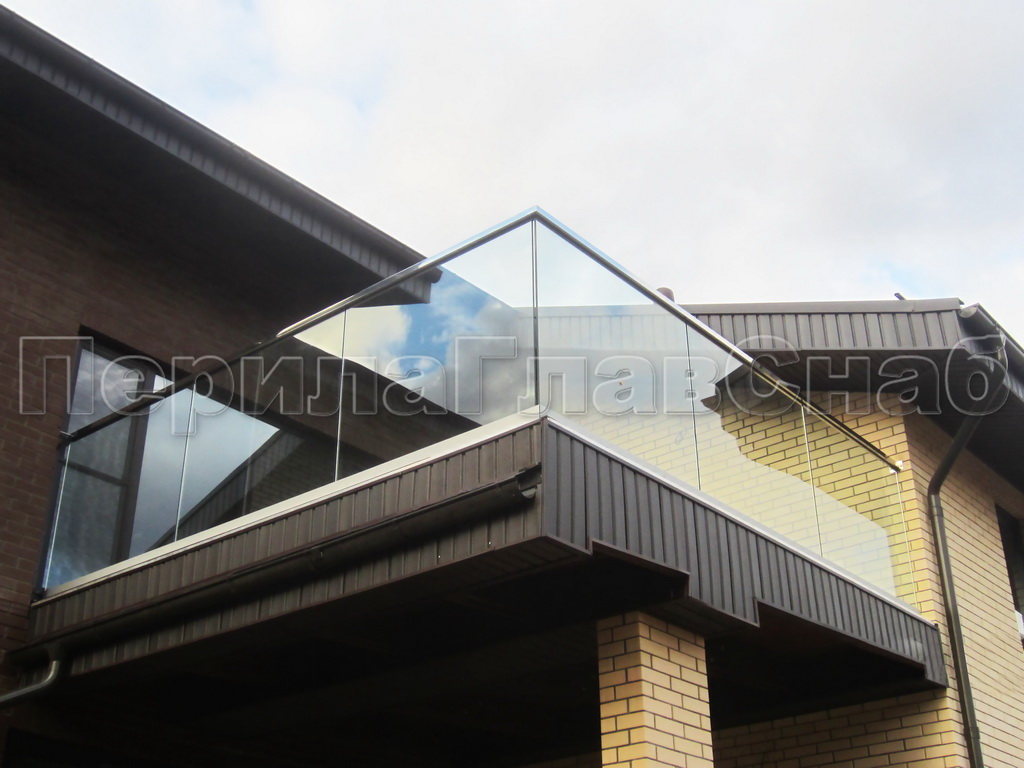 Подумайте, какой сценарий пользования террасой? Если это открытая терраса-балкон и по ней будут бегать дети или ходить члены семьи и гости, то наверняка им захочется подойти и облокотиться на стеклянные ограждения. Конечно, в таком случае поручень, установленный сверху на стекло или на выносе просто необходим. Другим незыблемым преимуществом установки поручня является то, что поручень делает всю конструкцию перил из стекла жесткой, связывает ее. В качестве альтернативы поручню мы можем предложить П-образный изящный профиль из нержавеющей стали. Он монтируется на верхнюю кромку стеклянных ограждений террасы, тем самым защищает кромку стекла и связывает все полотна стекол между собой.
