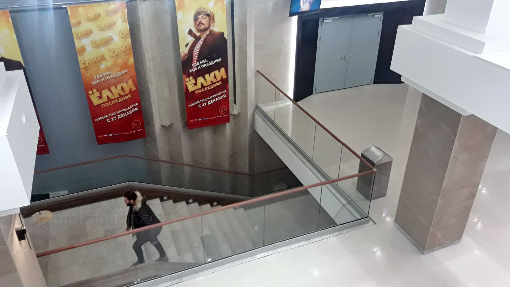 Фасад торгового центра полностью стеклянный, поэтому фронтальную часть ограждений входных групп заказчик попросил изготовить стеклянной на стойках. Эффекта прозрачности достигли путем использования 8-ми миллиметрового ультрапрозрачного стекла. Для стальных деталей перил использовали сталь тройной полировки AISI304L. Тройная полировка позволяет продлить срок жизни стальных ограждений.