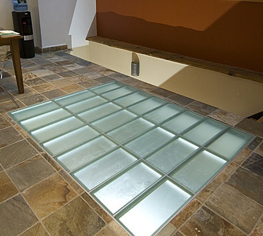 Стеклянное перекрытие из матового стекла на внутреннем балконе