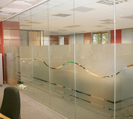 Стеклянные перегородки с декоративным рельефом в офисе